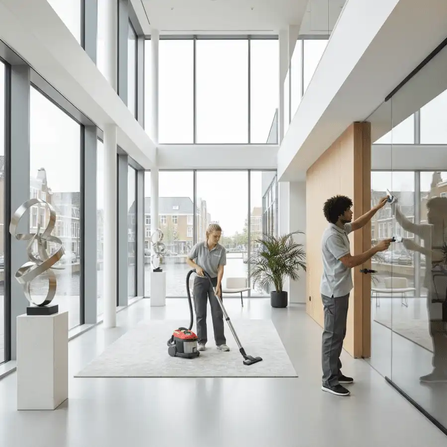 Schoonmaak van kantoren en bedrijfspanden in beverwijk en omgeving. Van basis onderhoud tot vaste teams, met dag- of avondschoonmaak. Inclusief sanitair, pantry, vloeren, werkplekken en algemene ruimtes.